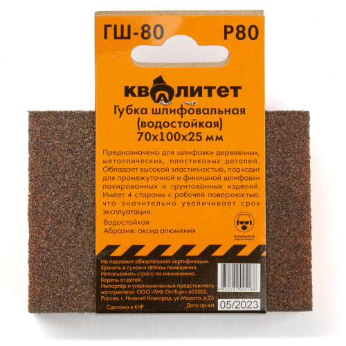 Губка шлифовальная Квалитет 70х100х25мм P80 ГШ-80