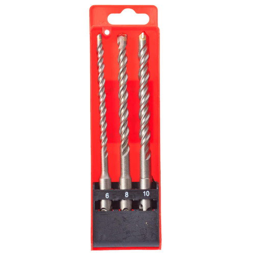 Артикул товара: 100741 Штрихкод: 2155000913497 Характеристики товара: Длина, мм - 160.0000. Страна производства - Китай. Вес товара, г - 206.0000. Рабочая длина, мм - 100.0000. Количество в упаковке, шт - 3. Макс. диаметр бура, мм - 10. Габариты упаковки, мм - 15х55х185..