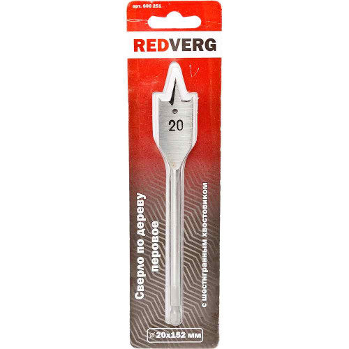 Сверло по дереву REDVERG перовое HCS 20 мм(600251)