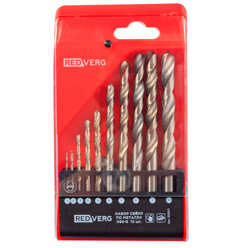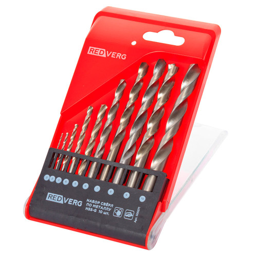 Набор сверл по металлу REDVERG 10 шт HSS-G, 1-10 мм.(500271)