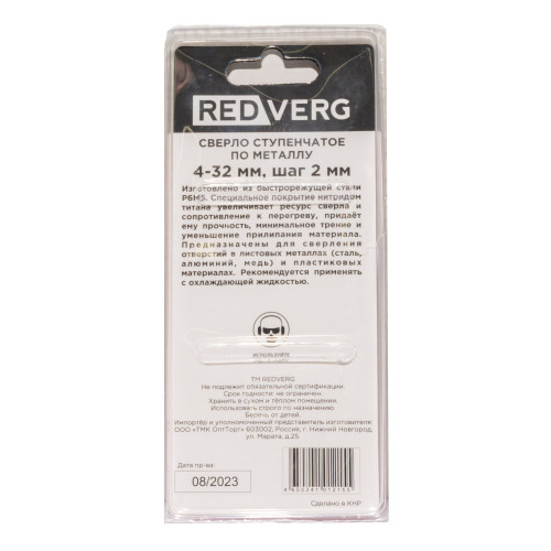 Сверло ступенчатое REDVERG по металлу HSS TIN 4-32 мм(501142)