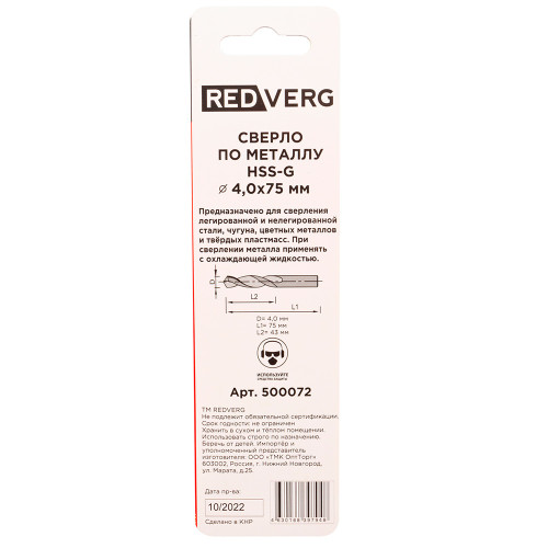 Сверло по металлу REDVERG HSS-G 4 мм (2 шт.)(500072)