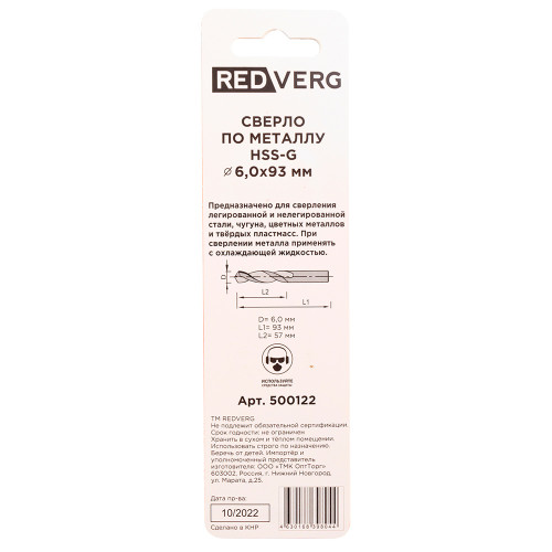 Сверло по металлу REDVERG HSS-G 6 мм(500122)