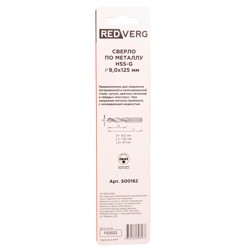 Сверло по металлу REDVERG HSS-G 9 мм(500182)