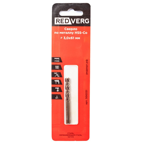 Сверло по металлу REDVERG кобальтовое HSS-Со 3 мм (2 шт.)(500331)
