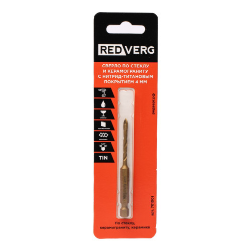 Сверло по стеклу и керамограниту REDVERG с нитрид-титановым покрытием 4мм(701001)