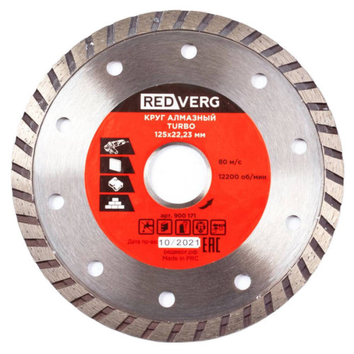 Круг алмазный REDVERG сплошной TURBO по бетону и кирпичу 125х22,23 мм(900171)