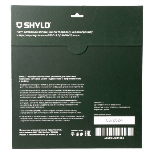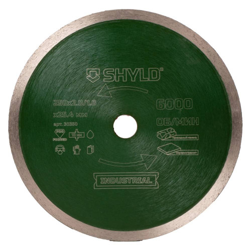 Круг алмазный SHYLD сплошной по твердому керамограниту и природному камню 250х25,4 мм(30350)