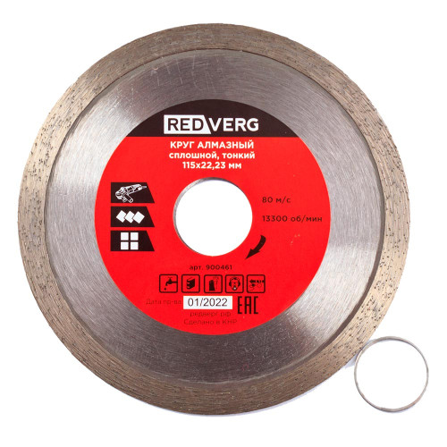 Круг алмазный REDVERG сплошной тонкий по керамограниту и плитке 115х22,23x1,2мм (900461)