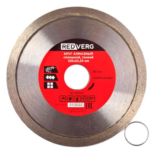 Круг алмазный REDVERG сплошной тонкий по керамограниту и плитке 125х22,23x1,2мм (900471)