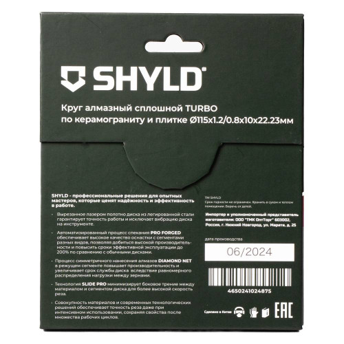 Круг алмазный SHYLD сплошной TURBO по керамограниту и плитке 115х22,23 мм(30270)