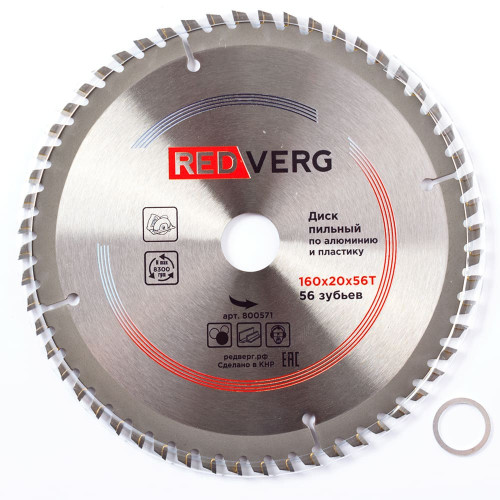 Диск пильный по алюминию и пластику REDVERG твердосплавный 160х20/16 мм, 56 зубьев(800571)