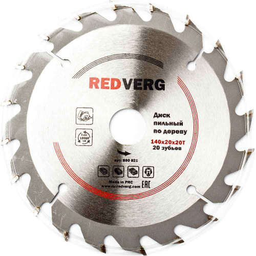 Диск пильный по дереву REDVERG твердосплавный 140х20/16/12.7 мм, 20 зубьев(800021)