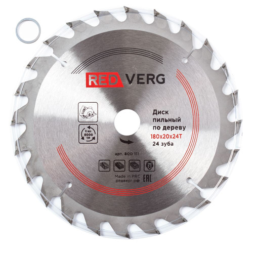 Диск пильный по дереву REDVERG твердосплавный 180х20/16 мм, 24 зуба(800111)