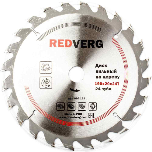 Диск пильный по дереву REDVERG твердосплавный 190х20/16 мм, 24зубьев(800151)