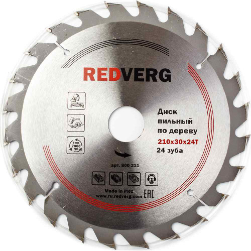 Диск пильный по дереву REDVERG твердосплавный 210х30/20/16 мм, 24 зуба(800211)