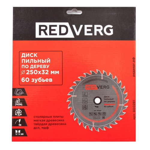 Диск пильный по дереву REDVERG твердосплавный 250х32/30 мм, 60зубьев(800281)