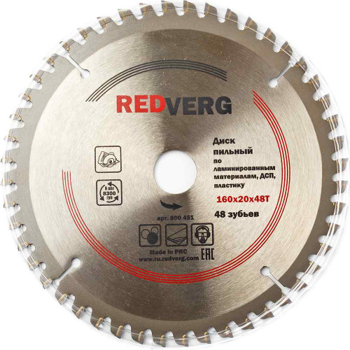 Диск пильный по ламинату REDVERG твердосплавный 160х20/16 мм, 48 зубьев(800451)