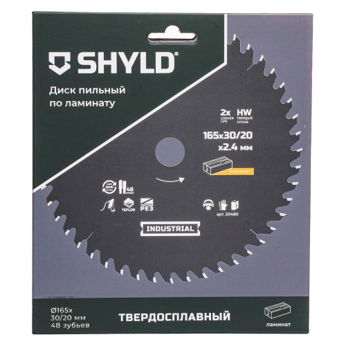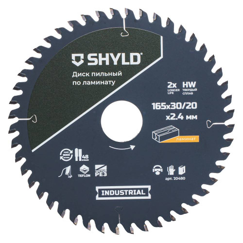 Диск пильный по ламинату SHYLD твердосплавный 165х30/20 мм, 48 зубьев(20480)