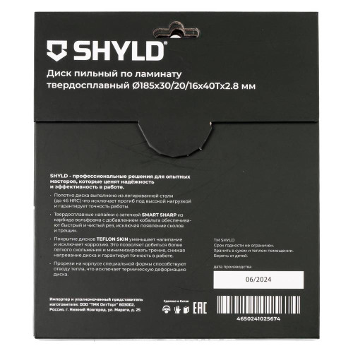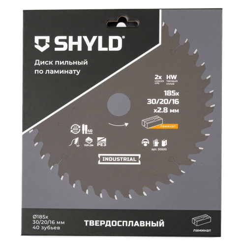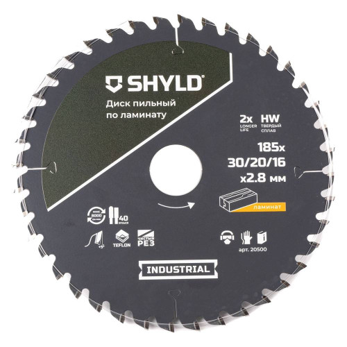 Диск пильный по ламинату SHYLD твердосплавный 185х30/20/16 мм, 40 зубьев(20500)
