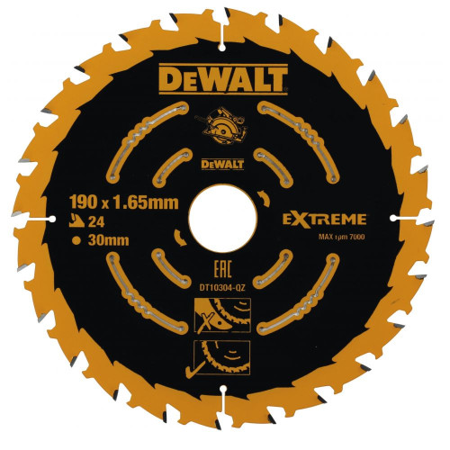 Артикул товара: DT10304 Штрихкод: 5035048085882 Характеристики товара: Страна производства - Китай. Макс. число оборотов холостого хода, об/мин - 7000.0000. Диаметр диска, мм - 190. Диаметр посадочного отверстия, мм - 30. Макс. ширина пропила, мм - 1.6500. Материал обработки - Дерево. Количество зубьев, шт - 24. Толщина, мм - 0.99. Габариты упаковки, мм - 14х245х230..