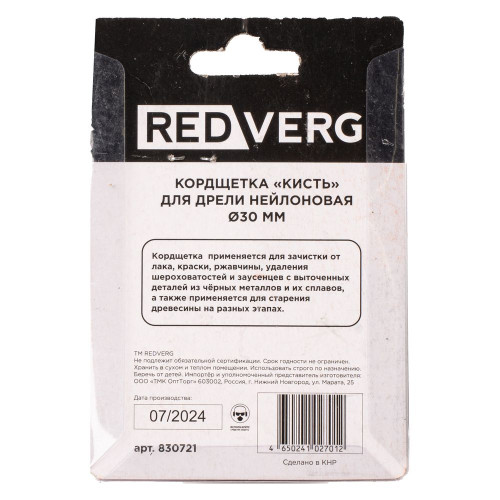 Кордщетка-кисть для дрели REDVERG нейлоновая 30мм(830721)