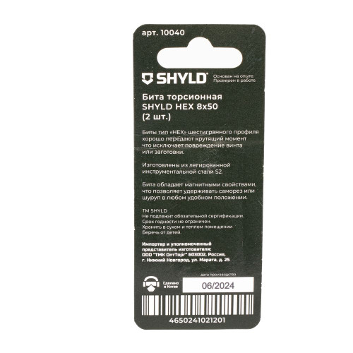 Бита SHYLD торсионная HEX 8x50 (2шт.)(10040)