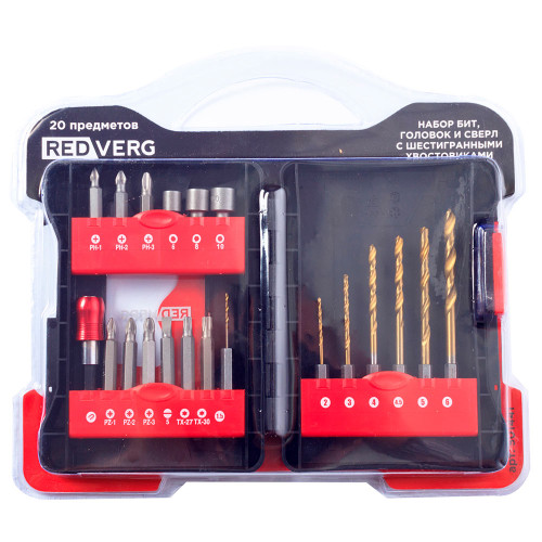 Набор бит, головок и сверл с шестигранными хвостовиками REDVERG (501441)