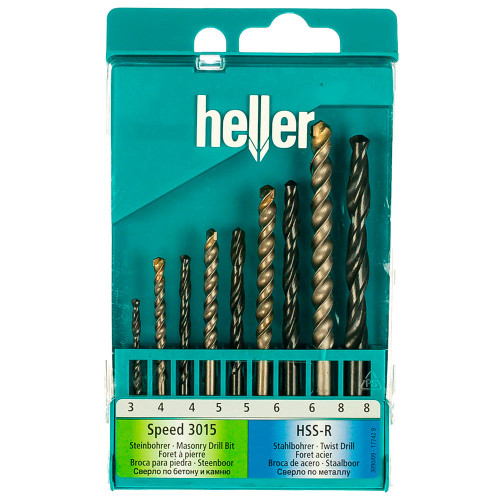 Набор комбинированный универсальный Heller: HSS по металлу ф 3/4/5/6/8, камень Ø 4/5/6/8 (9 пр)