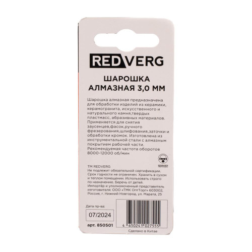 Шарошка REDVERG алмазная 3,0мм, хвостовик 3 мм (2шт.)(850501)