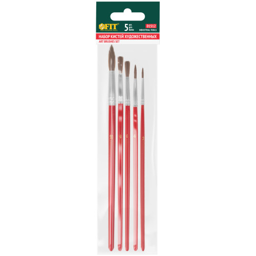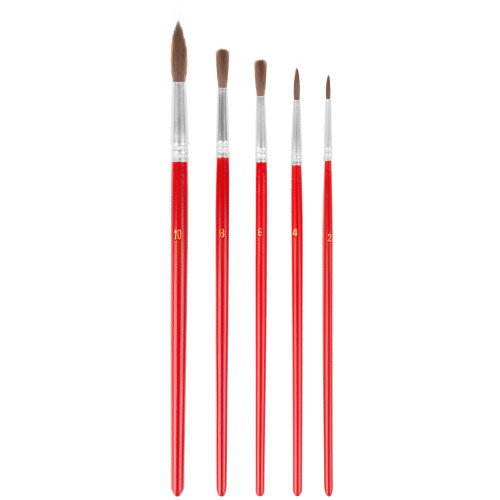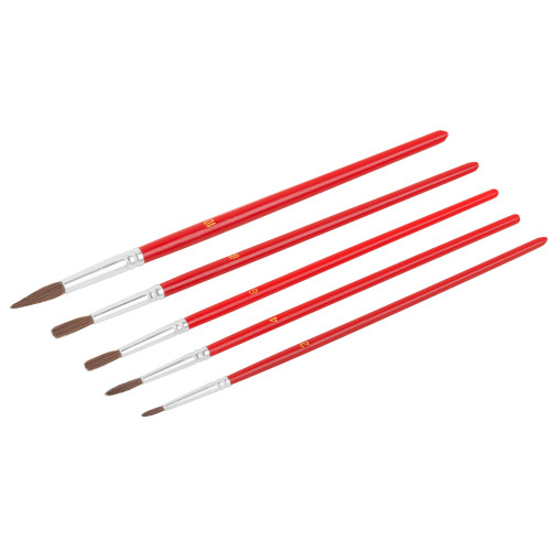 Кисти художественные, натуральная щетина, деревянная ручка, круглые, набор 5 шт.