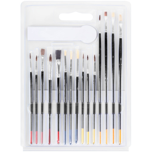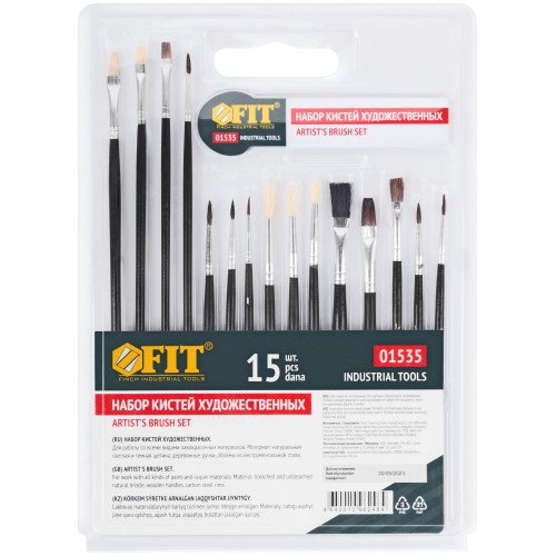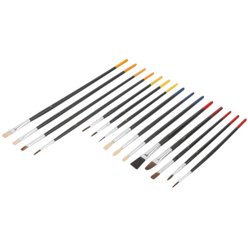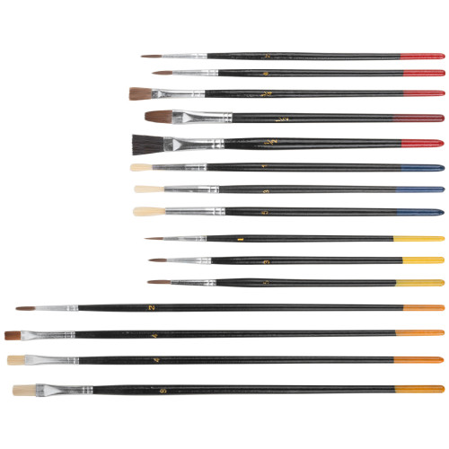 Кисти художественные, натуральная щетина, деревянная ручка, плоские и круглые, набор 15 шт.