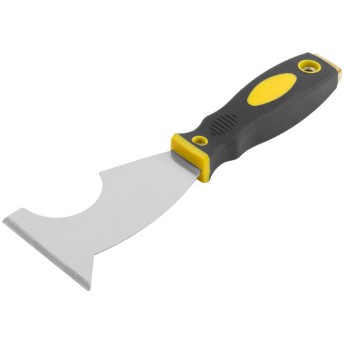Шпатель многофункциональный Профи, толщ.лезв.1 мм, двухкомп. ручка с метал. бойком, усил.сталь, 75 мм