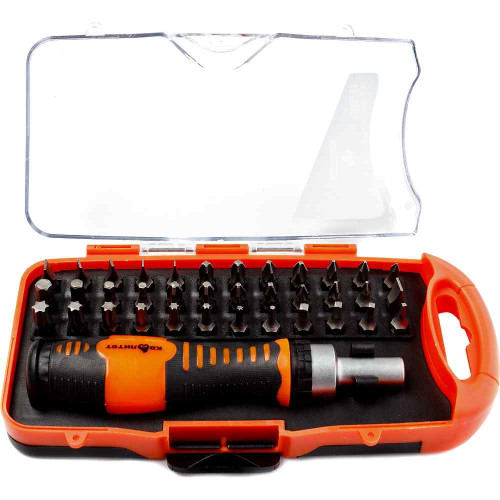 Артикул товара: НОБ-37 Штрихкод: 4630046779927 Характеристики товара: Страна производства - Китай. Вес товара, г - 420.0000. Набор - Да. Количество в упаковке, шт - 37. Тип наконечника - SL (Slotted); PH (Phillips); HEX; T (Torx); SQ/R (Square/Robertson); PZ (Pozidriv). Габариты упаковки, мм - 35х100х190..