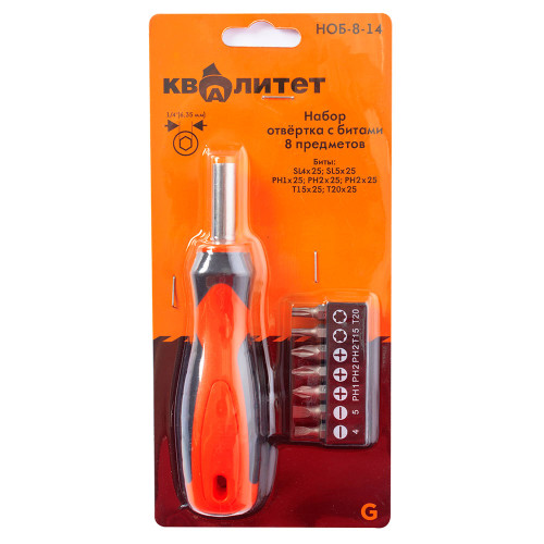 Набор отвертка с битами Квалитет 8 предметов НОБ-8-14