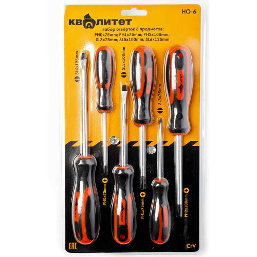 Артикул товара: НО-6 Штрихкод: 4670033291001 Характеристики товара: Страна производства - Китай. Набор - Да. Количество в упаковке, шт - 6. Тип наконечника - SL (Slotted); PH (Phillips). Габариты упаковки, мм - 40х185х320..