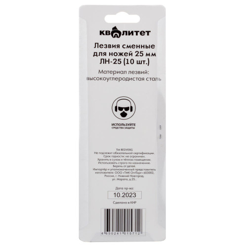 Лезвия сменные для ножей Квалитет 25 мм 10шт. ЛН-25