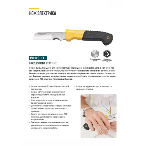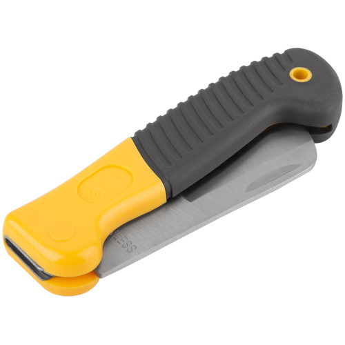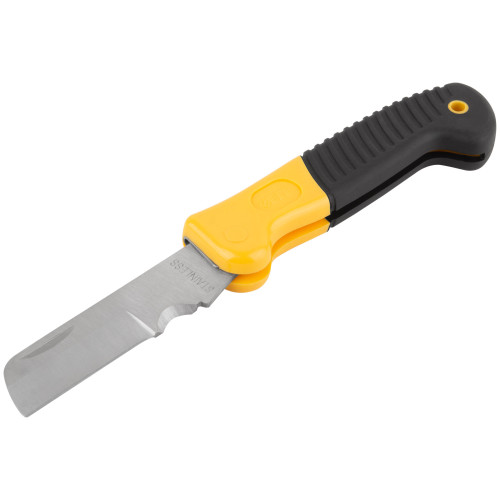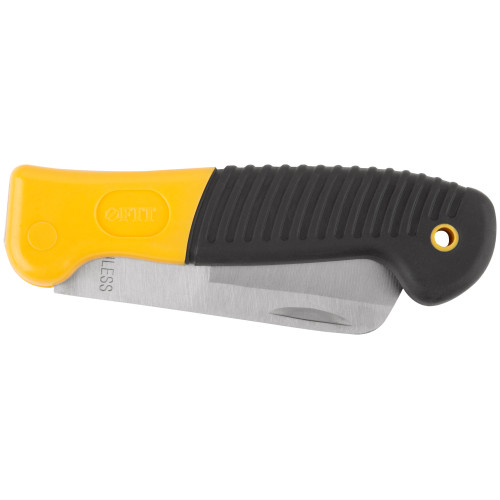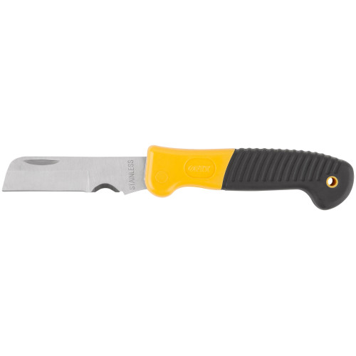 Нож электрика складной нержавеющий Профи, прямое лезвие 80 мм, прорезиненная ручка
