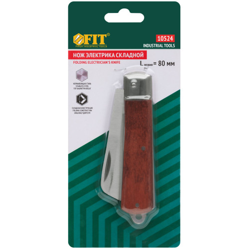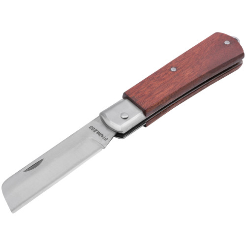 Нож электрика складной нержавеющий Профи, прямое лезвие 90 мм, деревянная ручка