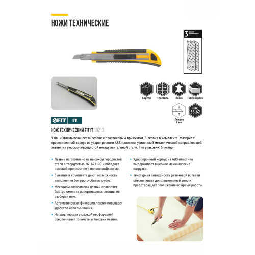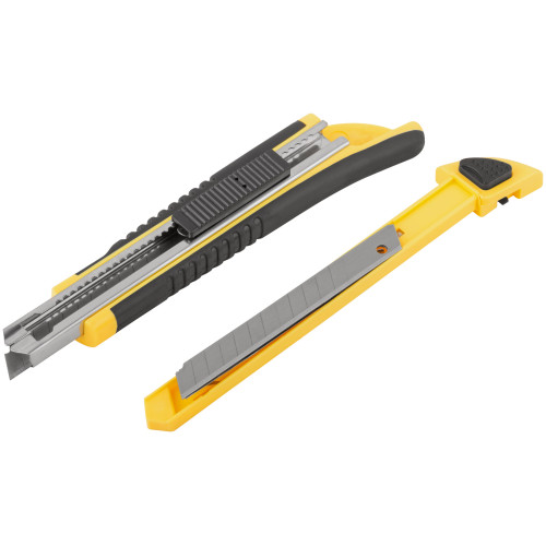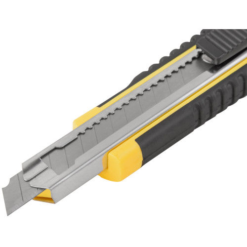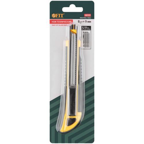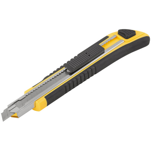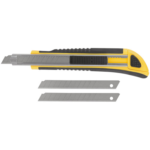 Нож технический 9 мм усиленный прорезиненный, кассета 3 лезвия