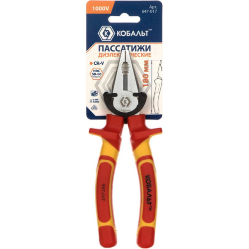 Пассатижи КОБАЛЬТ диэлектрические, 180 мм, CR-V (1 шт.) подвес
