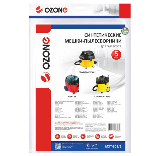 Мешок-пылесборник синтетический OZONE Turbo MXT-301/5 (5шт)